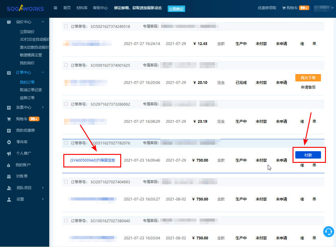 2. 點擊【訂單中心-我的訂單】,進入我的訂單頁面