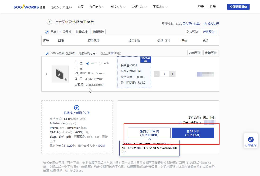 注:為使報價更精準,請上傳齊全的3D2D圖紙