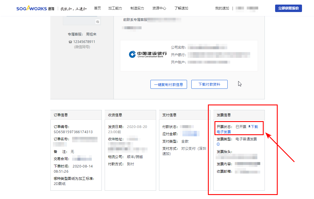 4. 進(jìn)入訂單詳情頁面,在【發(fā)票信息】處,點(diǎn)擊【下載電子發(fā)票】即可