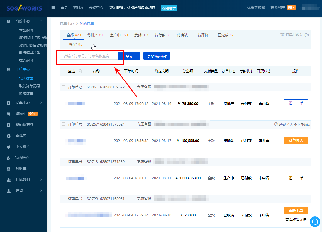 2. 點(diǎn)擊【訂單中心-我的訂單】,進(jìn)入我的訂單頁面
